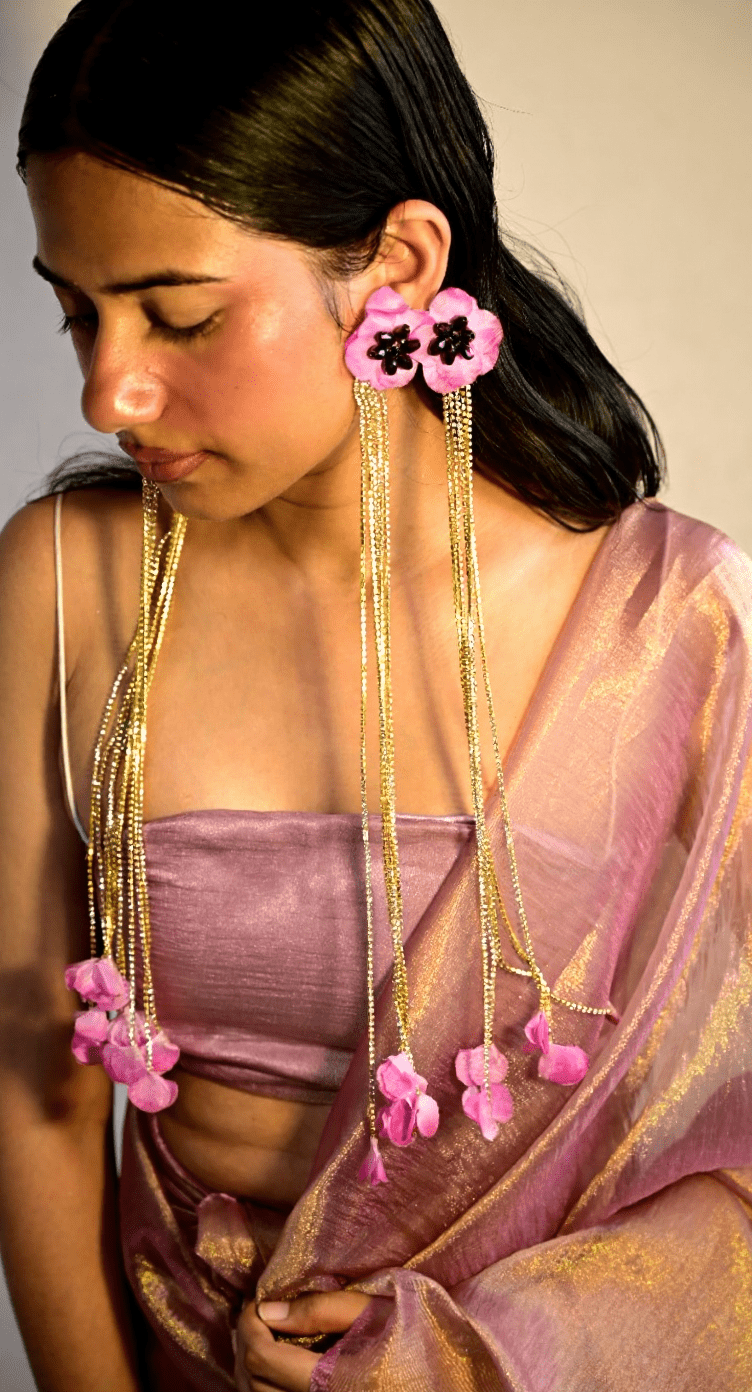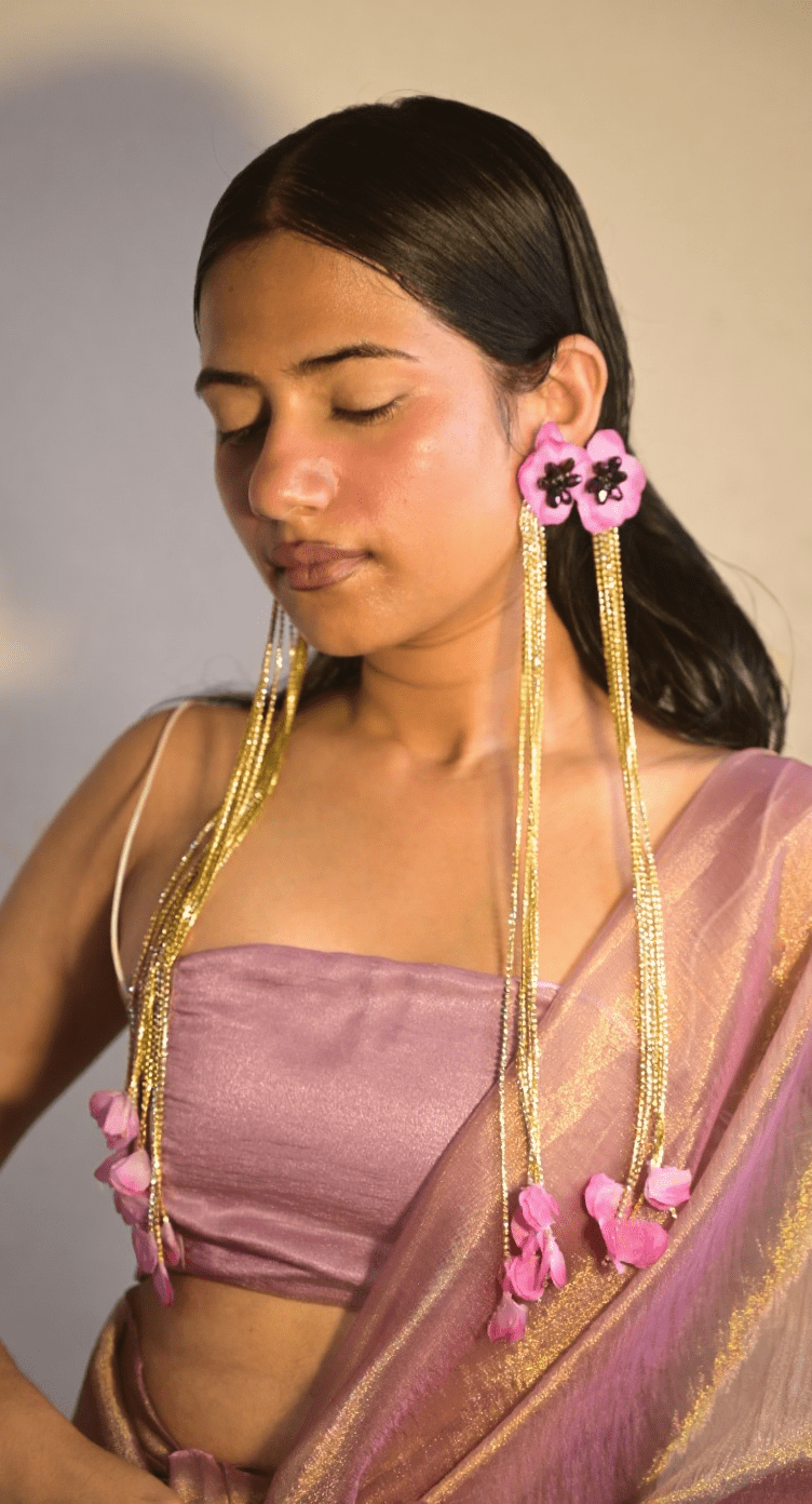 A cascade of delicate lavender blooms flowing in graceful length, creating a soft, romantic silhouette. Perfect for statement-making elegance with a dreamy floral touch golden plating